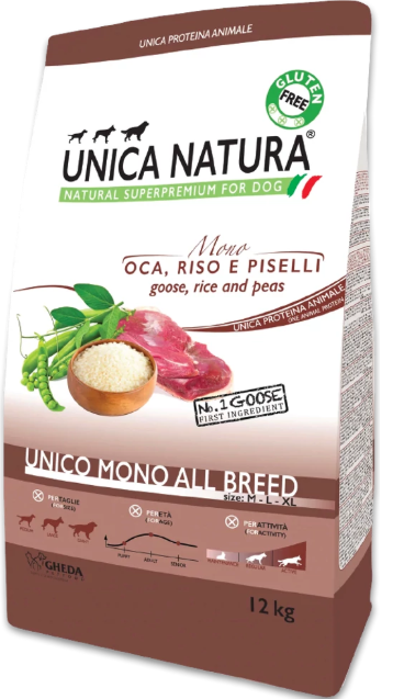 Monofehérjés szuper prémium kutyatáp közepes és nagytestű kutyának minden életszakaszban. Emberi fogyasztásra alkalmas színhússal: libahússal, rizzsel és borsóval.